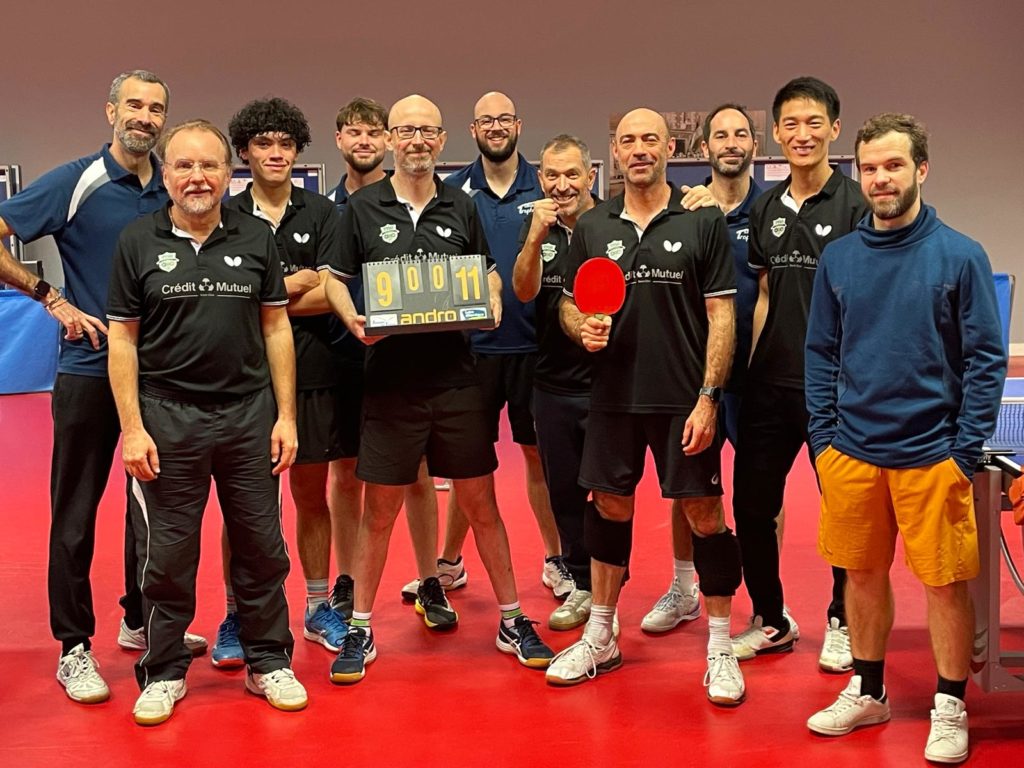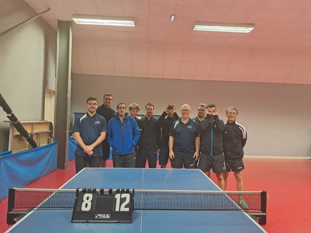 Belle victoire pour l’équipe 1, désormais définitivement assurée de son maintien. Aligné pour la première fois en A, Maxime B. (765 pts) a encore une fois épaté en remportant tous ses matchs, avec deux perfs contre un 8 et un 9. Buu (899 pts) a lui aussi tout gagné en A, tandis que Thierry (941 pts) a remporté 2 matchs et le double.