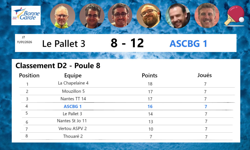 Equipe 1 – D2 – Le Pallet 3 – ASCBG 1 – 08:12