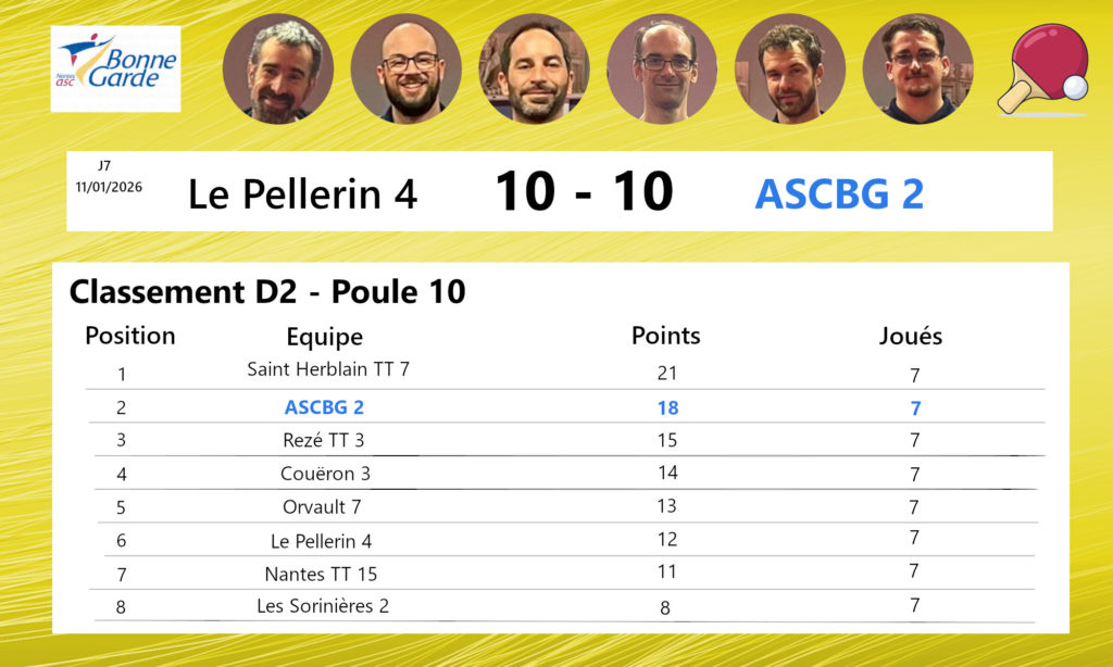 Equipe 2 – D2 – Le Pellerin 4 – ASCBG 2 – 10:10